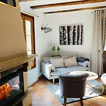 Vous pourrez profiter d'une vue sur le jardin. Maison de campagne avec cheminée et extérieur comprend une salle de bains avec une douche et une machine à laver. Les salles de bains sont également équipées d'un sèche-cheveux et des draps de bain pour votre confort.